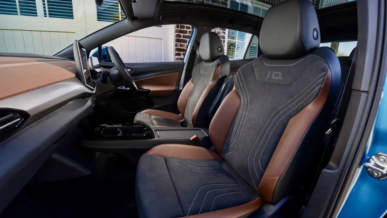 L’intérieur de l’ID.4 est spacieux et lumineux, tout particulièrement avec le toit panoramique ouvrant livrable. Vous pouvez opter pour un chic intérieur blanc, marine ou brun. Le constructeur vous propose même un similicuir résistant aux taches et des sièges avant ventilés en option.