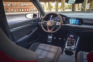 À l’intérieur, la GTI 380 met en valeur sa lignée. La version « Autobahn » est équipée de sièges en tissu « Scalepaper Plaid » et de motifs en nid d’abeille. Ceux qui optent pour la finition « Performance » ont droit à des sièges en cuir Vienna, mais ils peuvent opter pour le Scalepaper Plaid sur demande. En guise de clin d’œil à la tradition de la GTI, le pommeau de levier de vitesses manuel inspiré d’une balle de golf est conservé dans les éditions 380.