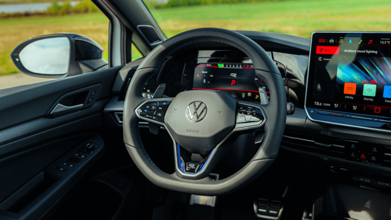 L’intérieur de la Golf R 2026 n’est pas en reste, habillé de matériaux premiums et bardé de détails qui servent à la fois à séduire et à accentuer le confort à bord. Les coutures contrastantes sur le volant, par exemple, lui accordent un look encore plus sportif, tout en offrant une prise de main stable et agréable.